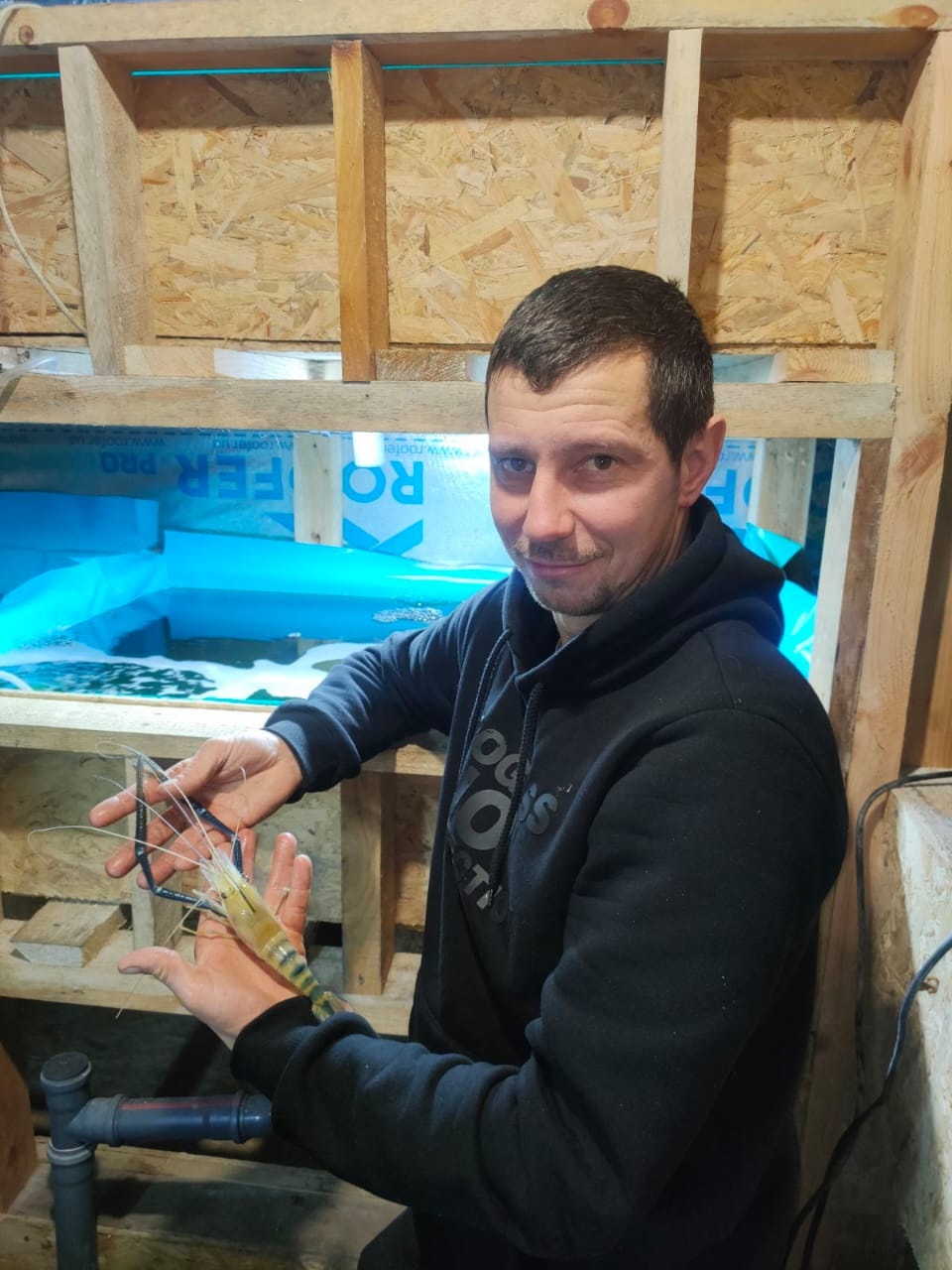 Починав із невеликого приміщення на подвір’ї власного будинку площею близько 80 квадратних метрів. Перший запуск виявився невдалим: креветки повільно набирали товарну вагу, а витрати були суттєво вищими за прибуток.